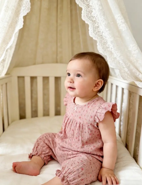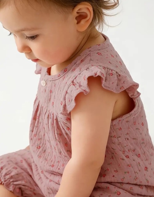 Babybloeier roze met fijne bloemetjes