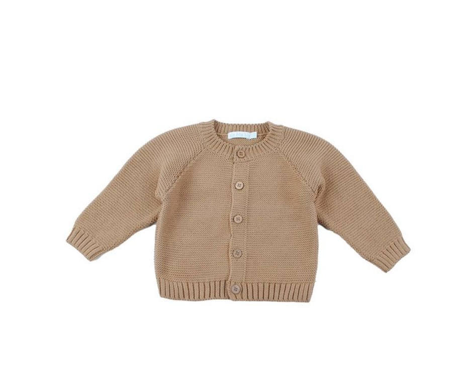Een klassiek en tijdloos babyvestje in een warme camel kleur. Met knoopsluiting vooraan en een zachte, gebreide structuur die comfortabel aanvoelt op de huid. Makkelijk te combineren met elk outfitje.