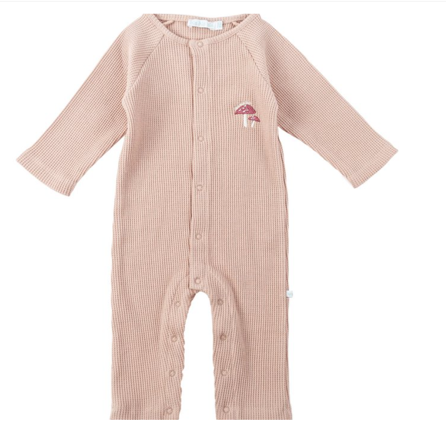Deze lichtroze boxppyjama is een must-have voor je kleintje. De rib jersey stof voelt heerlijk zacht aan en de drukknoopjes zorgen voor praktisch gebruik. Afgewerkt met een schattig geborduurd paddenstoelmotief.