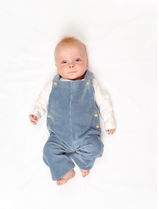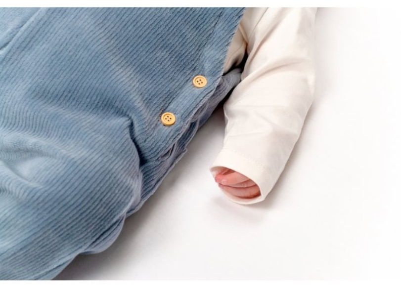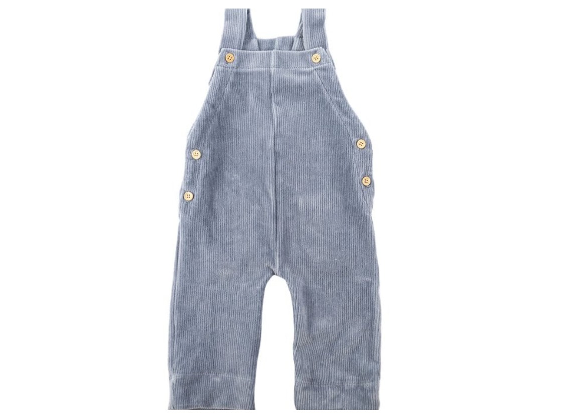 Deze stoere en toch schattige salopette is gemaakt van ribvelours-katoen en heeft houten knoopjes aan de zijkant en schouderbandjes. Comfortabel, stijlvol en gemakkelijk te combineren met een truitje of body.