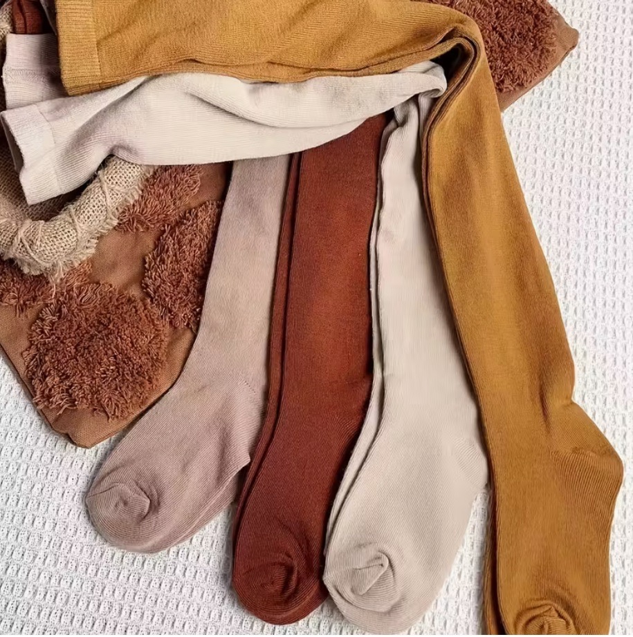 Kousenbroek in beige-donkerbruin-oker-lichtbruin