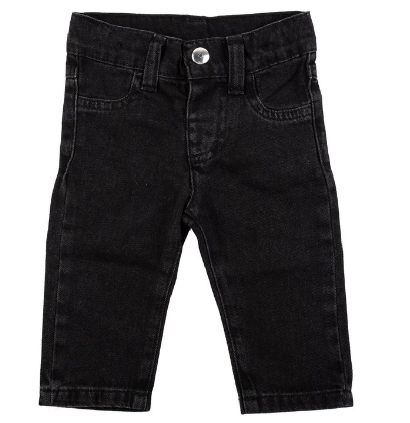 Een stoere basic jeans in zwart denim. Met elastische taille en klassieke jeansdetails. Makkelijk te combineren met elke outfit.