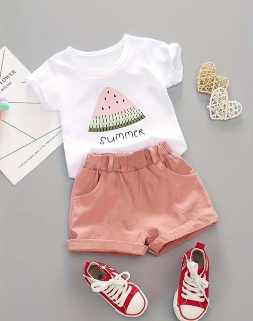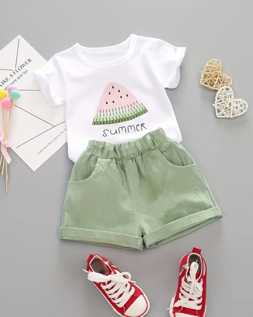Meisjesset t-shirt en short met meloen