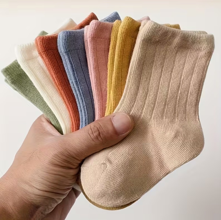 Sokken in bruin-olijf-roze-okergeel-blauw-gebroken wit