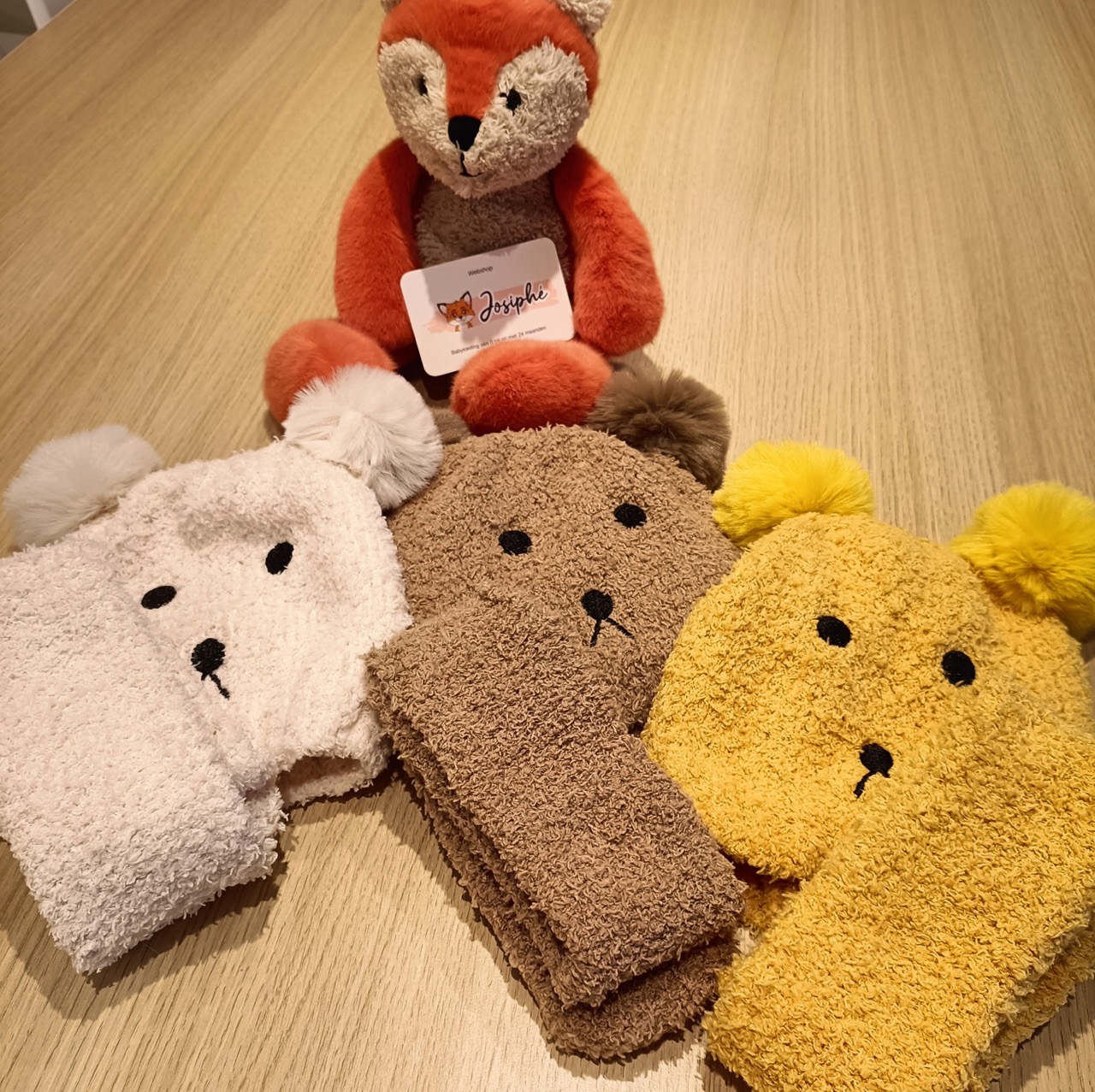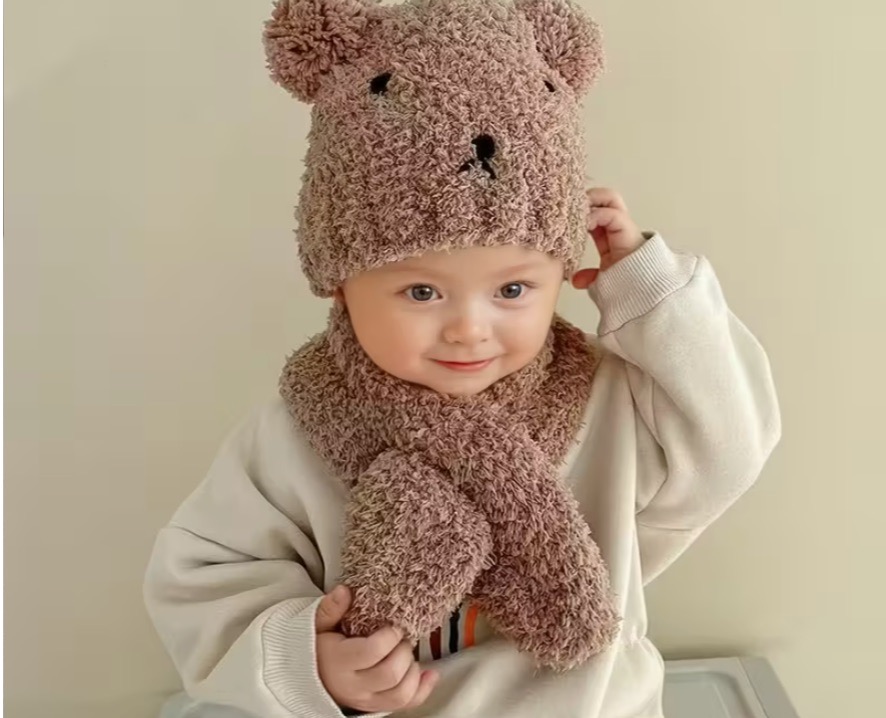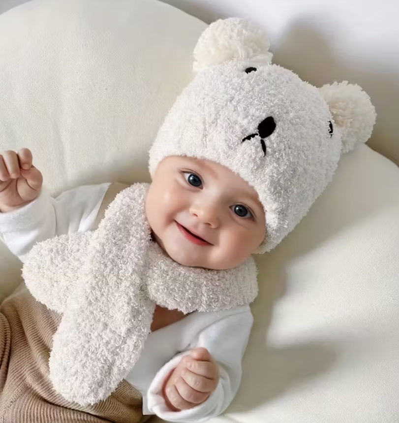 Muts-Sjaal setje (0 -12 maanden) in bruin, wit of okergeel